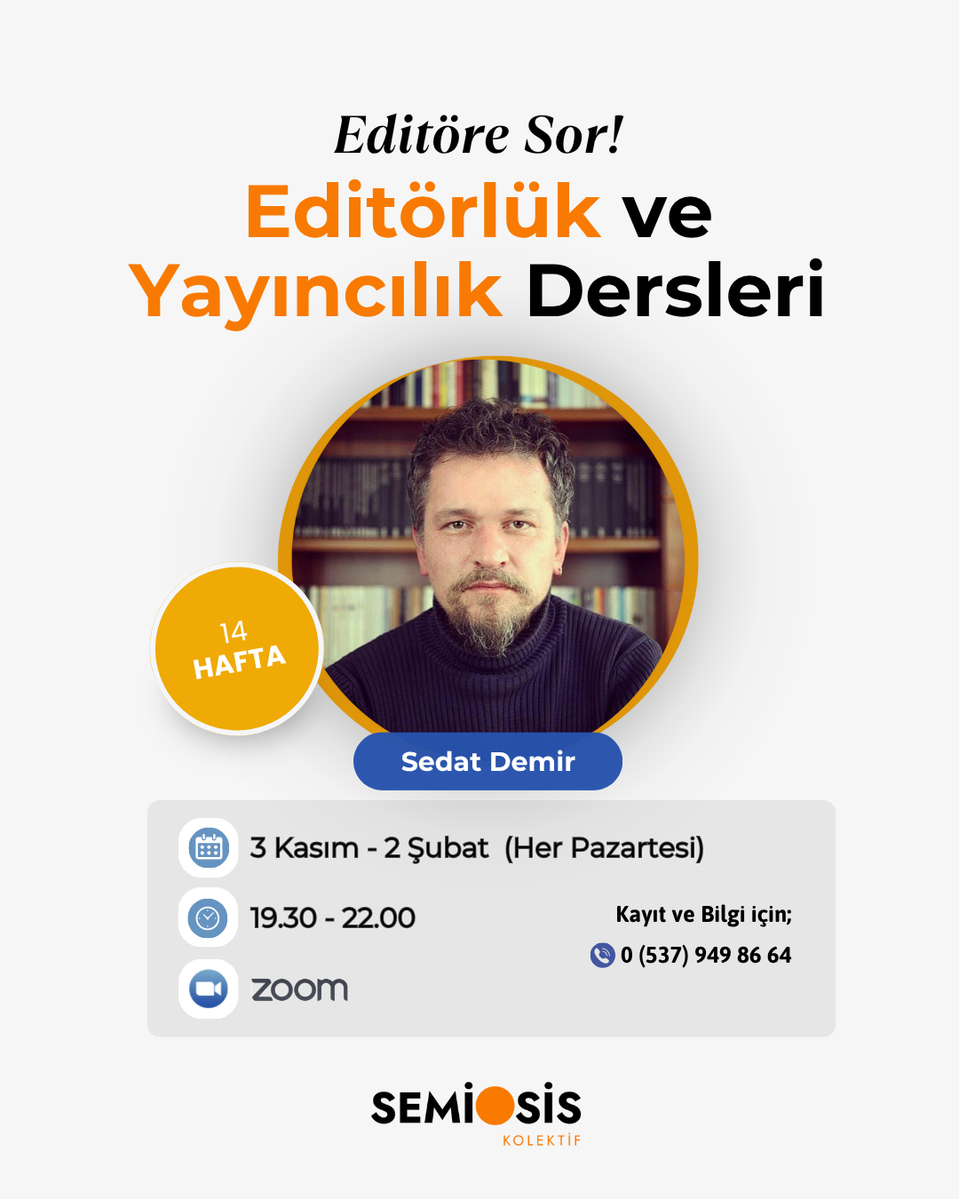 Editörlük, tıpkı yazarlık, eleştirmenlik, çevirmenlik, akademisyenlik gibi diğer okurluk mesleklerinden birisi ve daha fazlasıdır. Onları ayrıca kapsar, onların her işine karışır. Mesleki bilgileri arasında metinlere değer katma, onları ayrıştırma, ölçme, yapıldıkları yerden başka yere taşıma, bunları somutlaştırmak için de kavram, kuram, teknik ve yöntem dağarcığına sahip olmalı. Özellikle her kurmacanın, okuru tarafından yeniden yazıldığını, estetik ve anlam kazandığını düşünürsek editörün okur olarak bulunduğu yerin değerini daha iyi anlıyoruz. “Editöre Sor” dersleri de bu bağlamda bir yapı içinde beş odayla mesleğimizin yayıncılık, kuram, kavram ve yöntem bilgisi, yorum gücü oluşturma gibi birçok somut eylemin bir bakıma hazırlayıcısı ve tamamlayıcısı olarak tasarlandı.